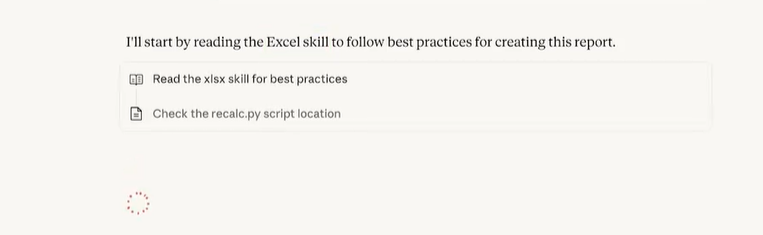 在一段prompt过后,我们可以发现Claude的分析过程中同样调用了底层技能,xlsx skill来给出相应结果