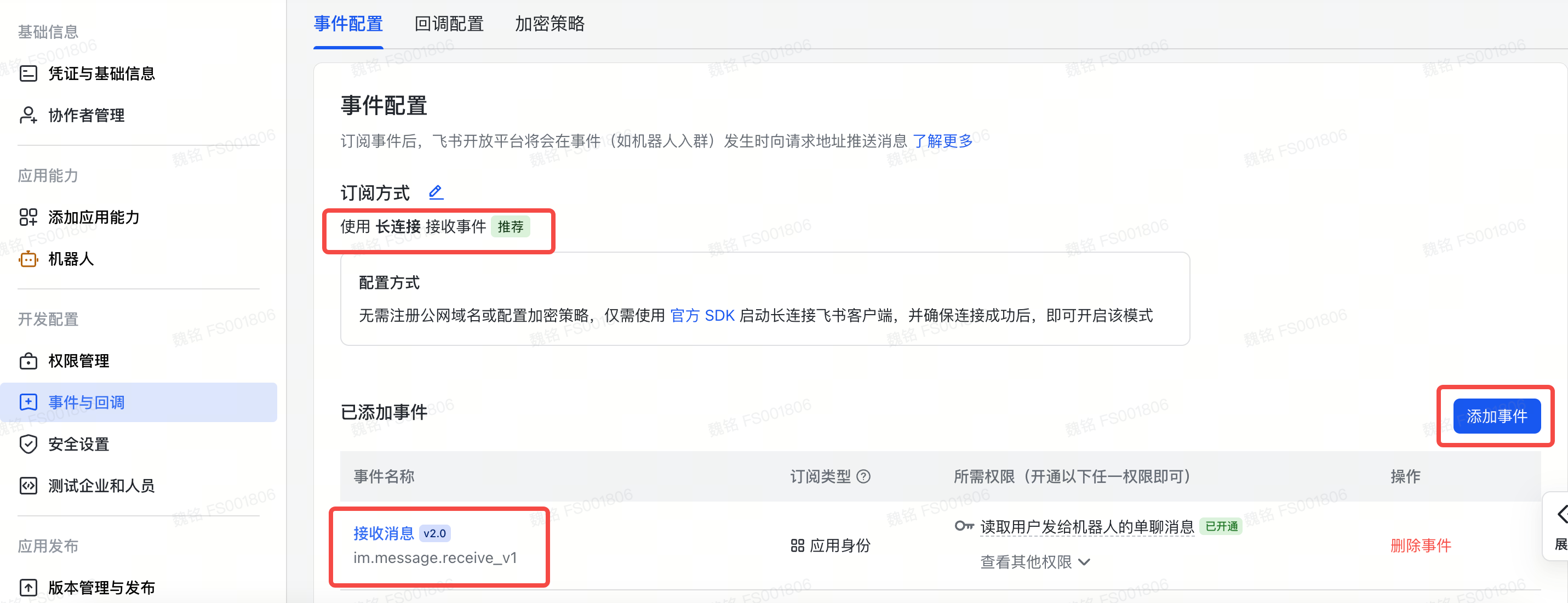 - 飞书开放平台->[开发者后台]->[创建自建应用]