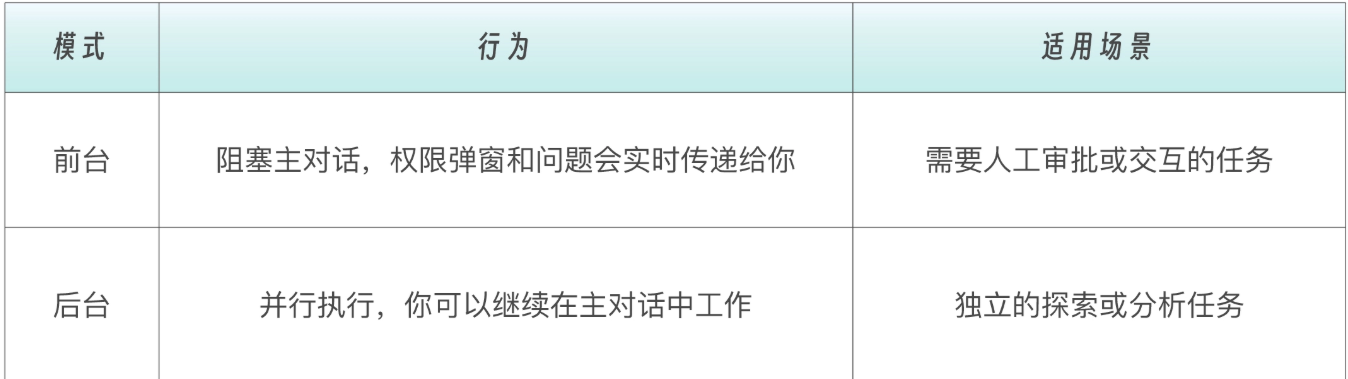 - 正在运行的前台子代理可以按 Ctrl+B 切换到后台