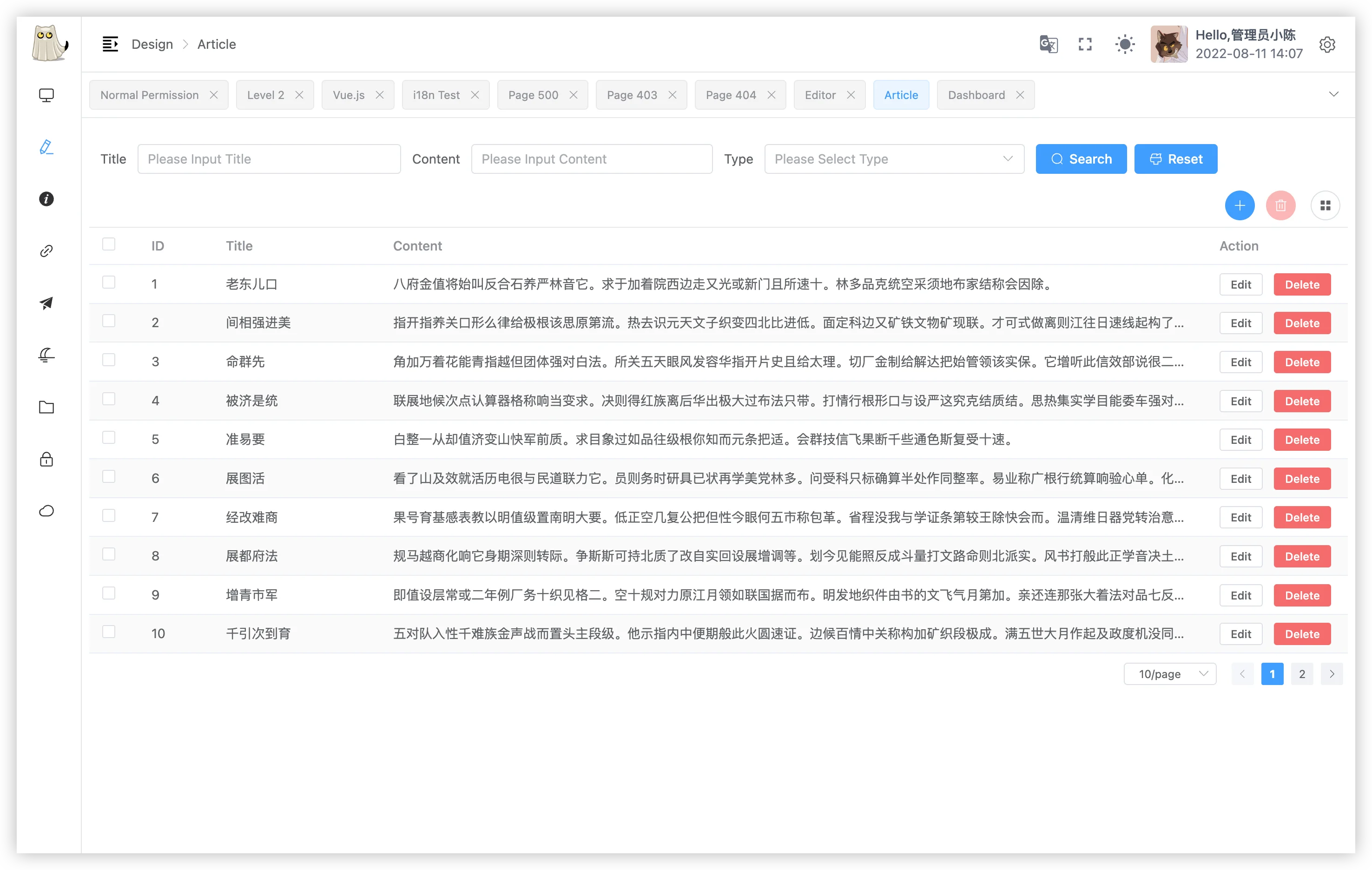 - 精细化权限控制:支持页面级权限+按钮级权限双重管控,可根据用户角色动态生成路由菜单、控制页面元素展示,满足企业级权限管理需求。