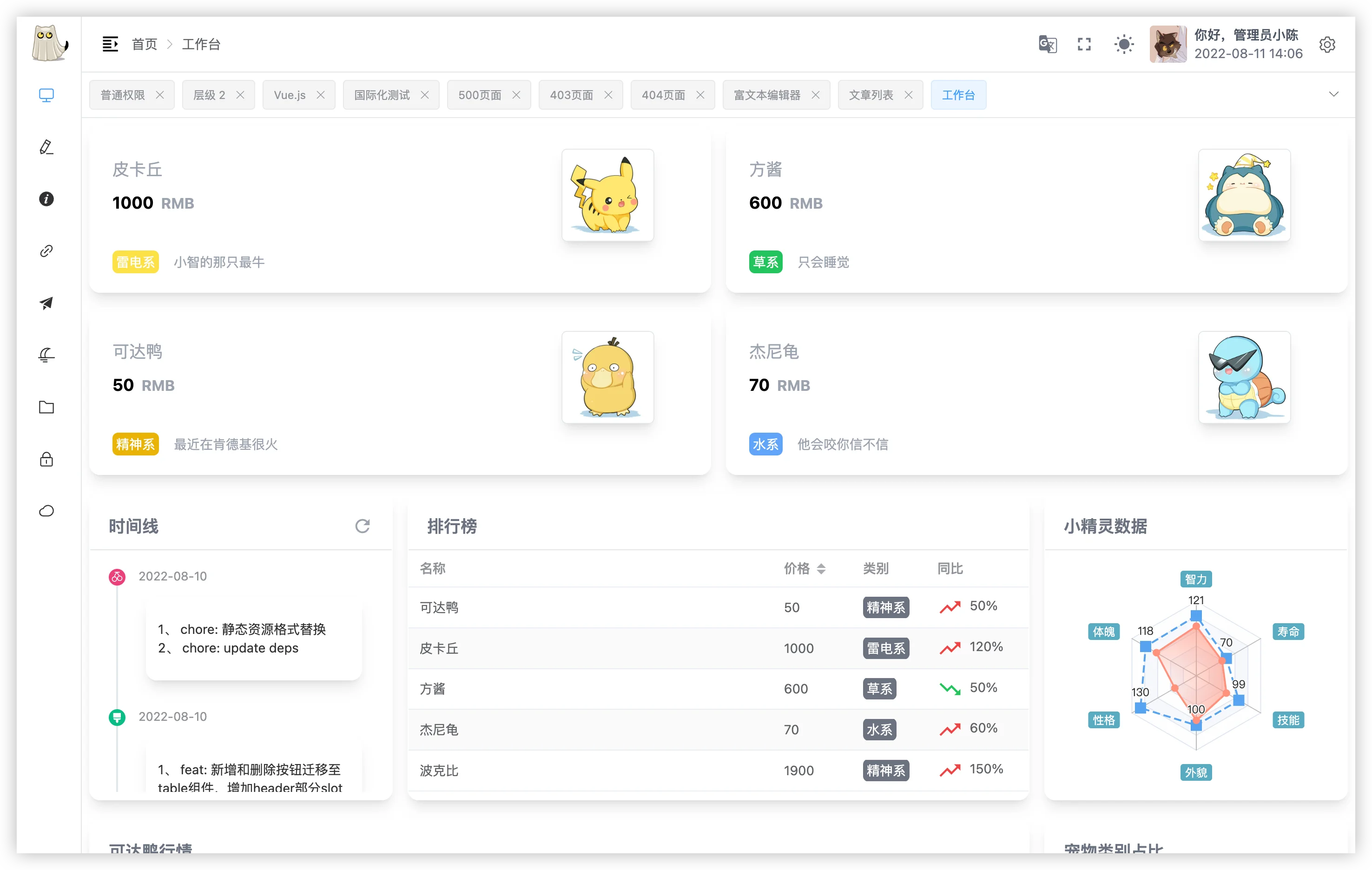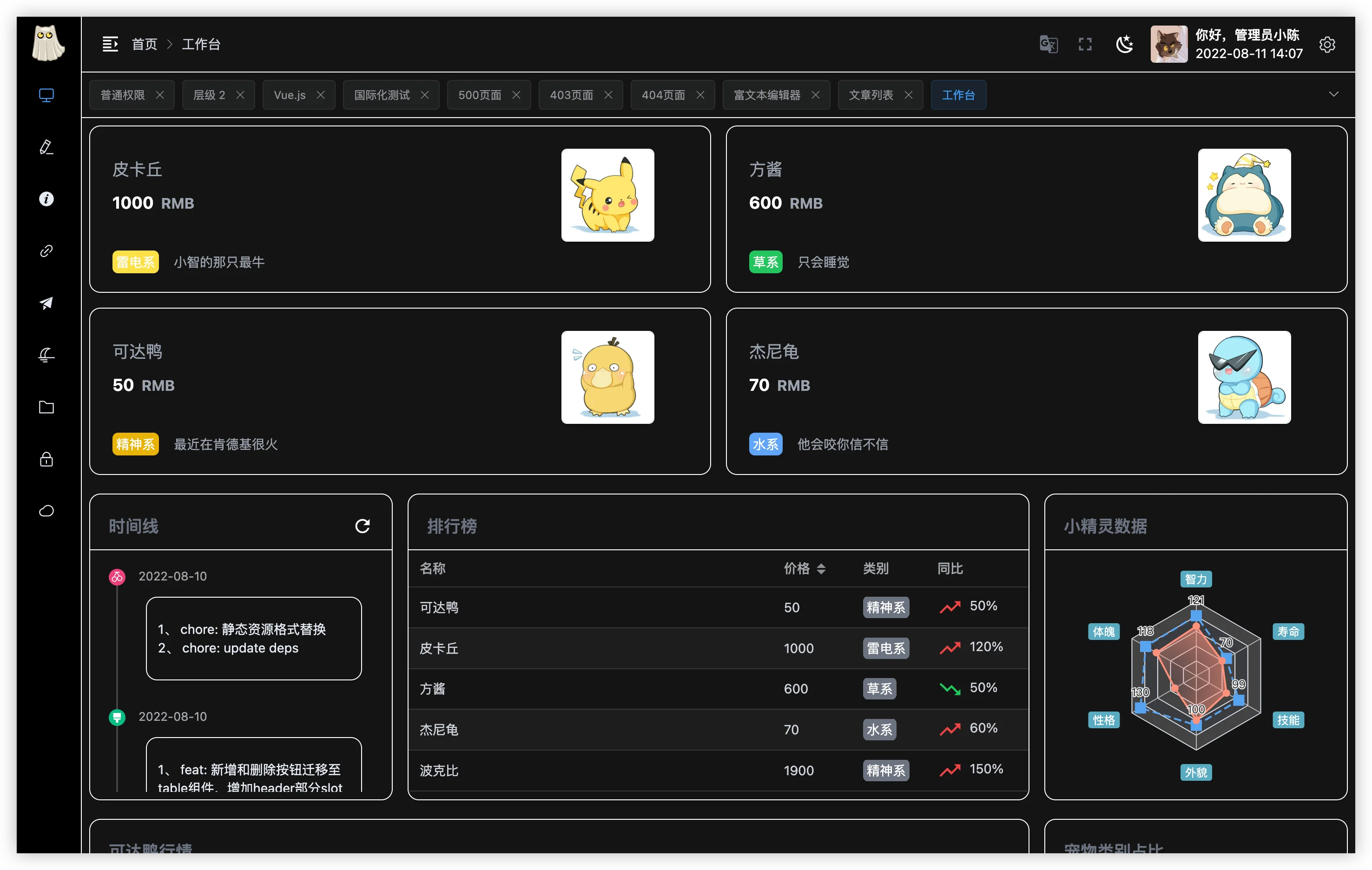 - Vxe-table高级表格:集成功能强大的表格组件,支持虚拟滚动、单元格编辑、树形表格、批量操作等复杂表格场景,替代基础表格满足高阶需求。