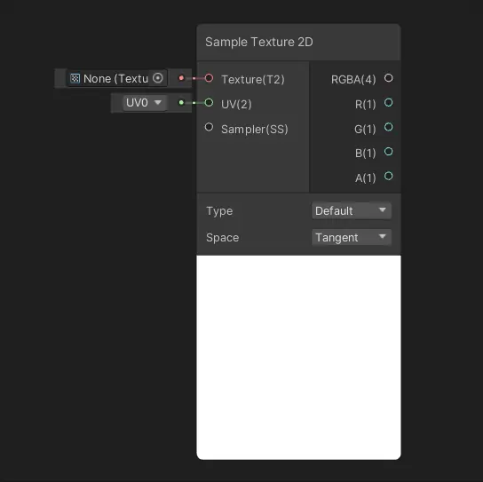 | Texture | Texture 2D | 无 | 指定要采样的 Texture 2D 资源。这是节点的核心输入,决定了采样操作的源数据。用户可以直接从项目资源中拖拽纹理资源到此端口,或在节点的检视面板中手动指定。 |