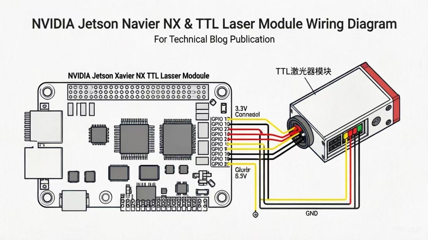 NVIDIA Jetson Xavier NX作为边缘计算领域的强大平台,不仅在AI推理方面表现出色,其丰富的GPIO(通用输入输出)接口也为硬件控制提供了可能。在工业检测、激光测距或光通信应用中,我们常需要通过TTL信号控制激光器的开启与关闭。本文将详细介绍如何使用Python在Jetson Xavier NX上控制GPIO引脚,实现对TTL激光器的精确通断控制,并封装成可复用的库函数,便于项目集成。