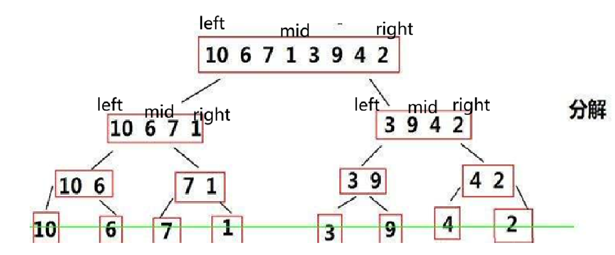 找到mid,然后分解即可,直到 left == right