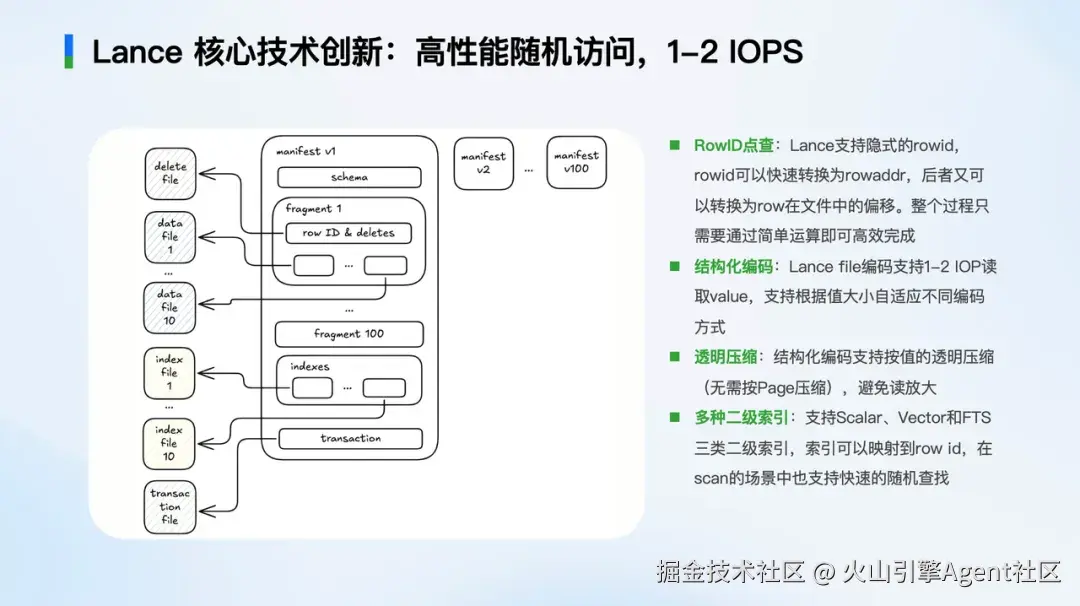 Lance 也可以对 IOPS 的点查性能优化和透明压缩。