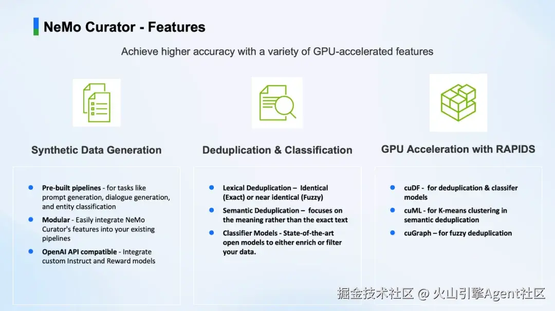 NeMo Curator 在文本数据处理上具有以下几个高精度的特点: