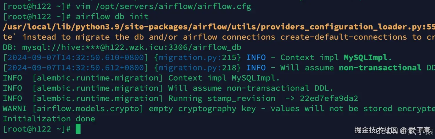 修改之后,保存,重新执行初始化操作(需要在数据库中确认已经建立了 airflow_db)