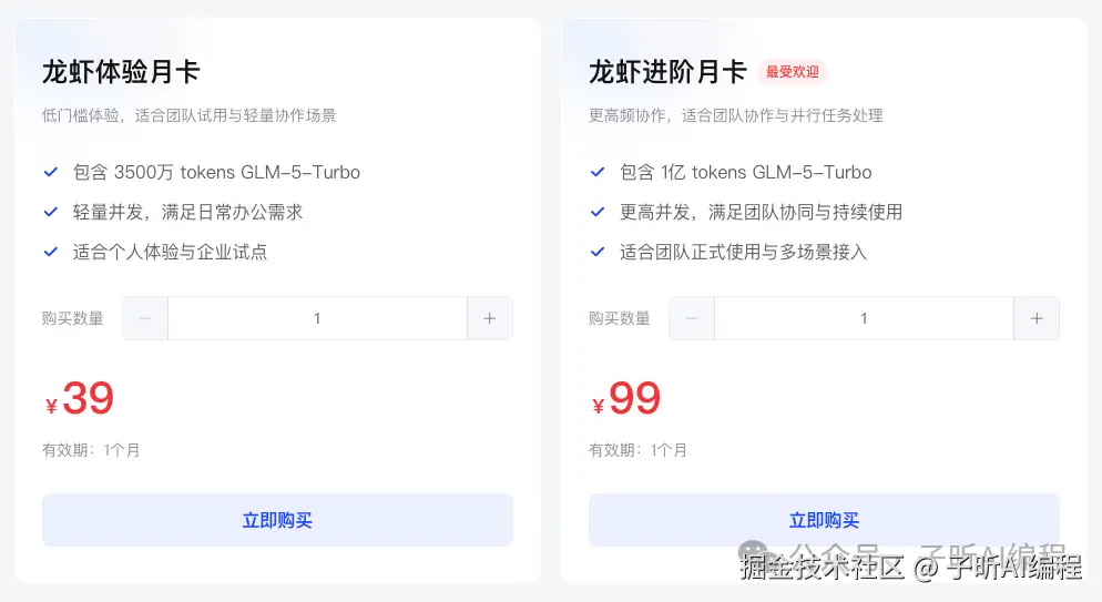 智谱针对Agent场景推出了龙虾套餐。