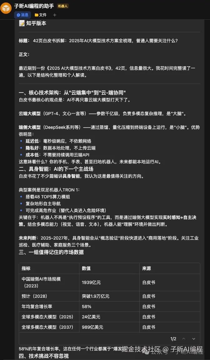 任务:根据一份AI技术白皮书,生成适合小红书、知乎、抖音三个平台的内容。