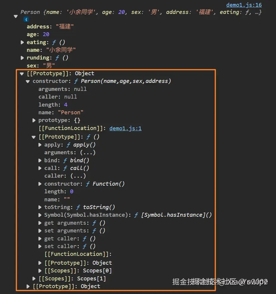 var f1 = new Person("小吴同学", 20, "男", "福建");