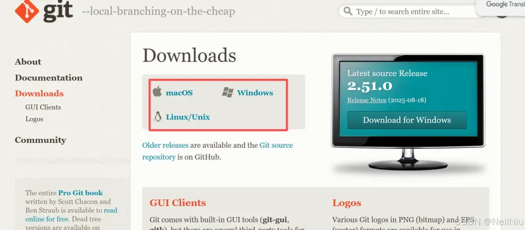打开官网:https://git-scm.com/downloads 选择对应的版本,下载git。