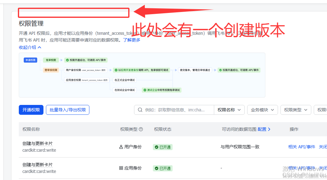 开通权限后,点击上方的「创建版本」