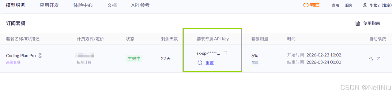 访问地址:https://bailian.console.aliyun.com/cn-beijing/?tab=model#/efm/coding_plan