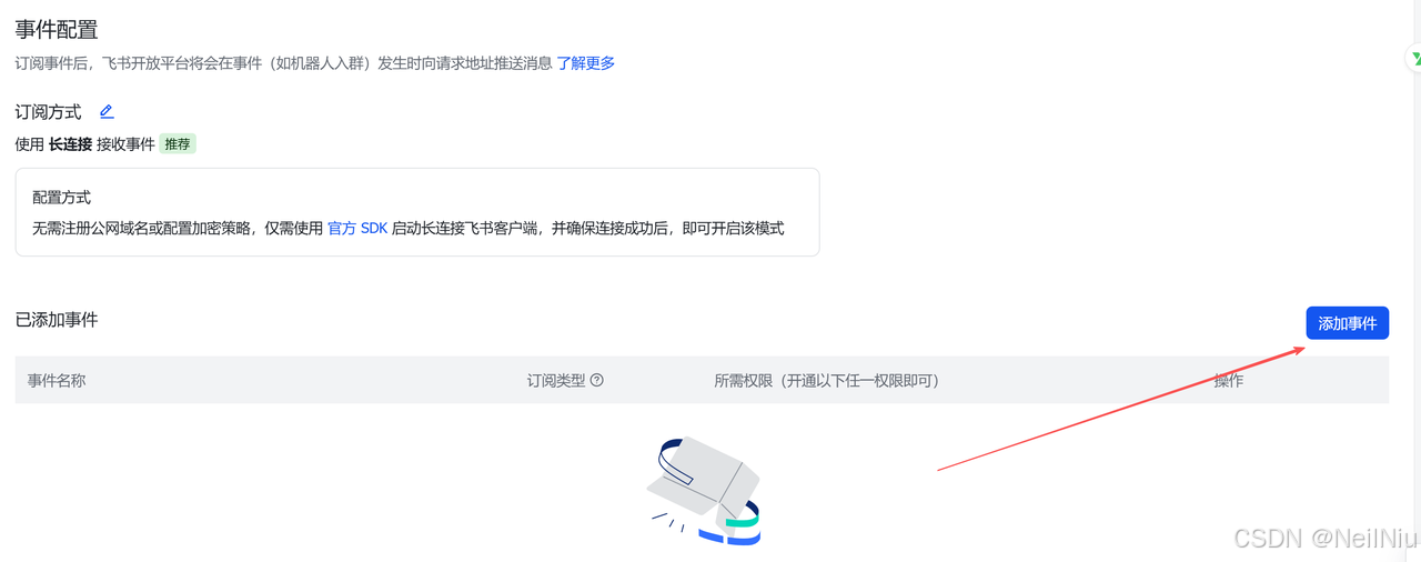 回到飞书开放平台,在你创建的应用下,找到「事件与回调」