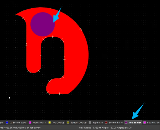 选中铜皮,切换到Top Solder层。