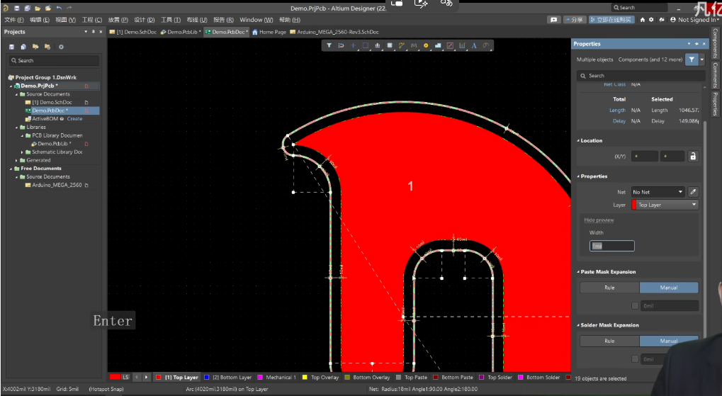 3、选中外框的某一段线,按Tab,切换到Top Solder层。