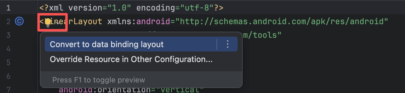 这里 @{data.info} 表示从 data 这个 ViewModel 中读取 info 字段。由于布局预览阶段不一定能真正拿到运行时数据,所以额外配了 tools:text,这样在预览 UI 时也能直接看到文本效果。