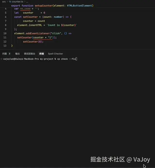 '*': 'vp check --fix', // 匹配所有的文件,执行代码检查并自动修复格式