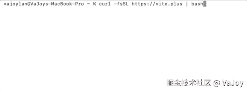 macOS 或 Linux 系统可以在终端通过指令来安装 Vite Plus: