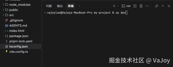 以上图创建一个 Web Application 项目为例,Vite Plus 最终会生成如下资源文件: