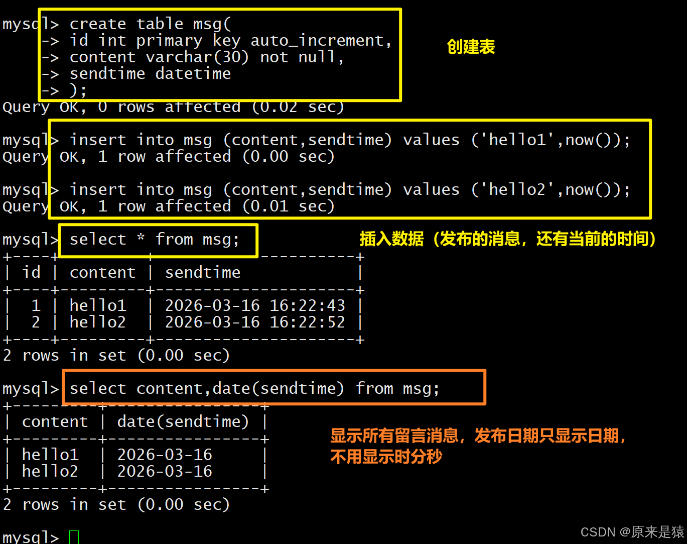创建留言表并筛选 2 分钟内的留言,是非常典型的业务场景: