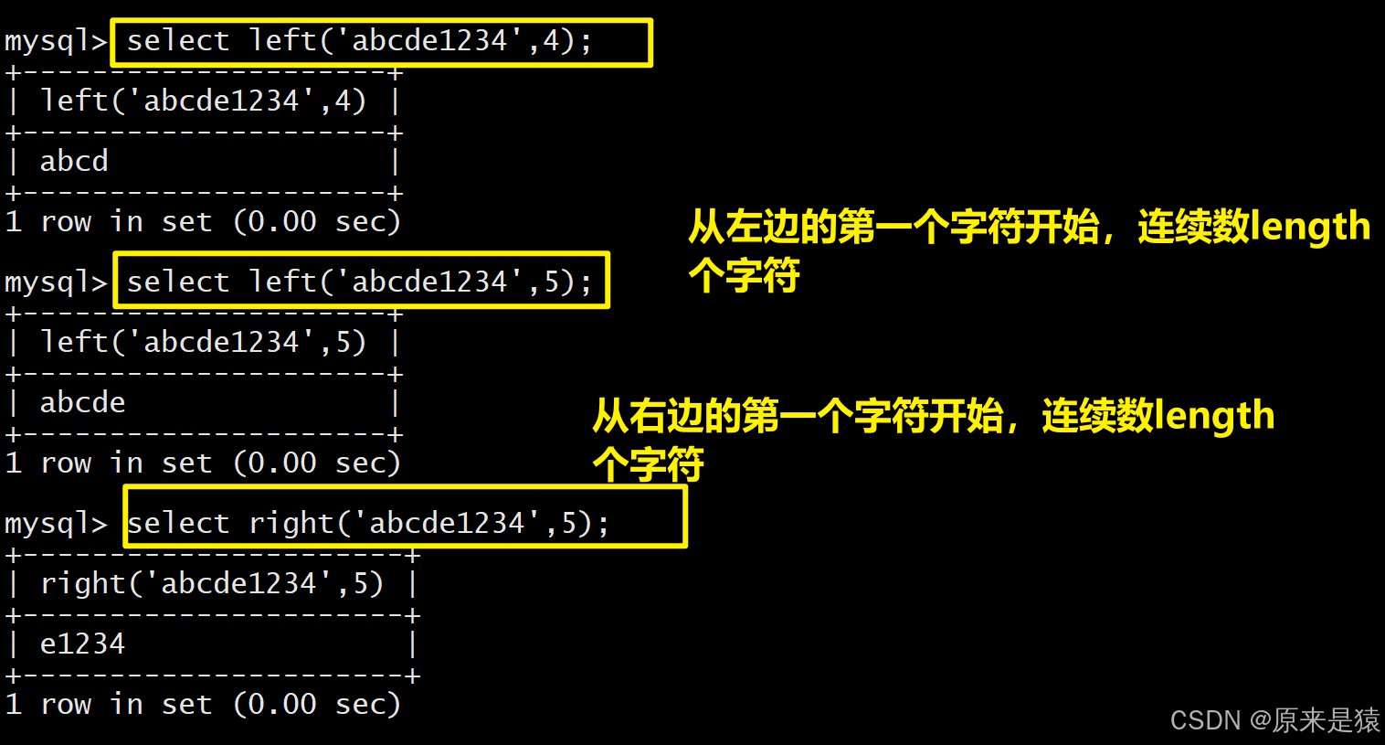 从指定位置开始,截取指定长度的子串**(注意:MySQL 中字符串起始位置为 1)**