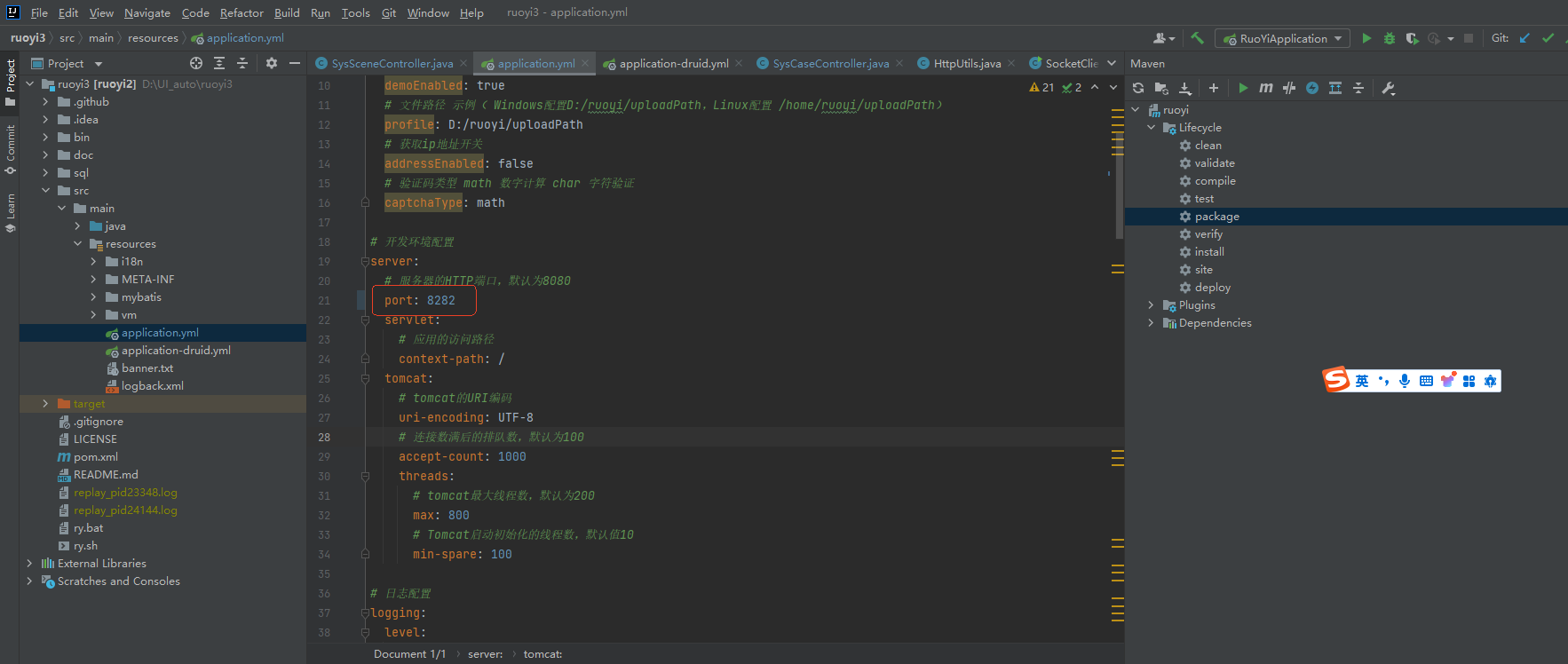 6.如果端口被占用的话,需要改动端口,前端如图:
