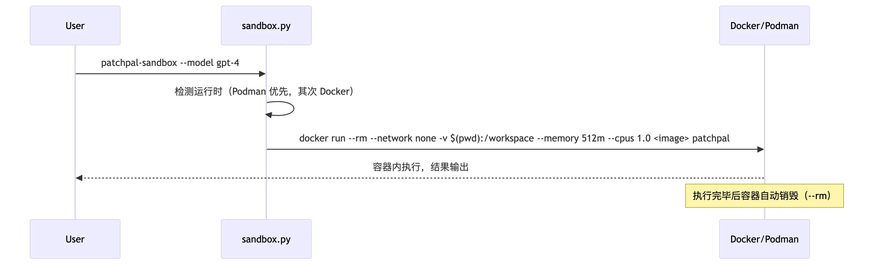 PatchPal 的沙箱逻辑集中在 sandbox.py,工作流如下: