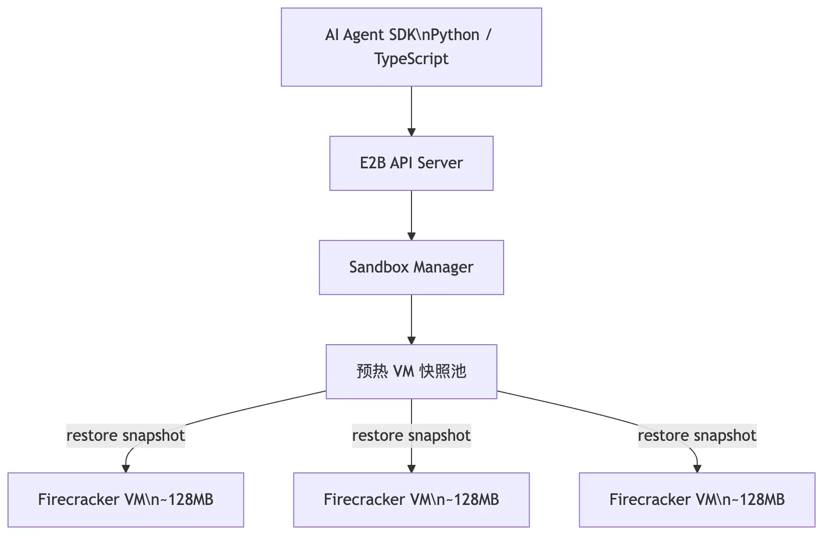 E2B 在 Firecracker 之上构建了完整的 AI 沙箱云服务,被 Manus、Perplexity 等用于生产环境: