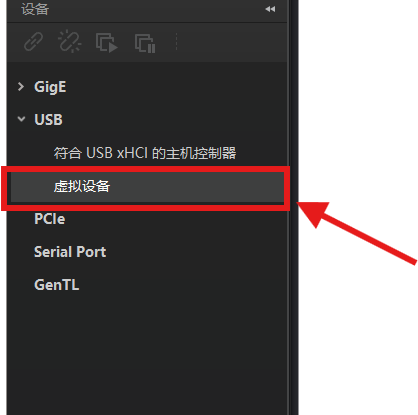 选择需要添加的虚拟设备,点击添加虚拟相机按钮就可以在右侧已添加列表中显示,正常情况下这样操作完后在MVS左侧设备列表中会显示虚拟设备见下