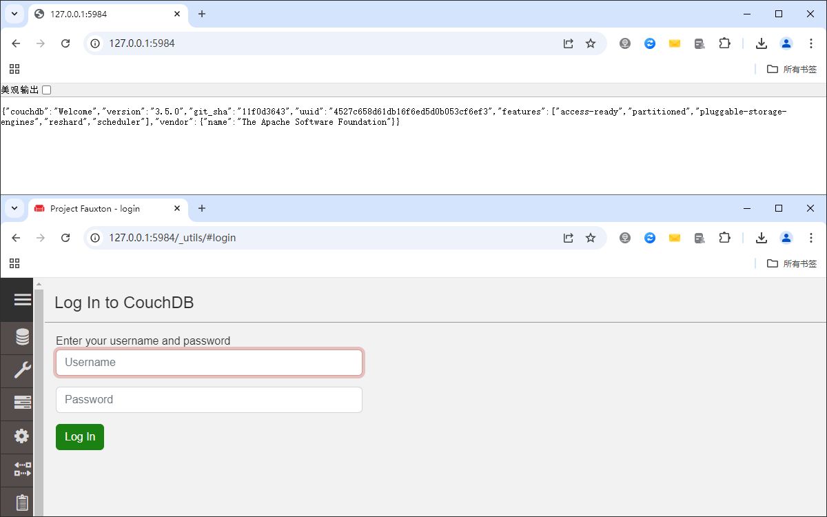 如果看到类似 {"couchdb":"Welcome", ...} 的JSON欢迎信息,说明服务已启动。