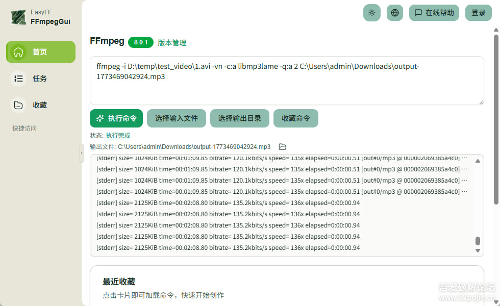 Windows\] FFmpeg 图形化:EasyFF v0.17 链接:[https://pan.xunlei.com/s/VOo53Grq_tEfnlPJZUyRxcuJA1?pwd=n22j#](https://pan.xunlei.com/s/VOo53Grq_tEfnlPJZUyRxcuJA1?pwd=n22j# "https://pan.xunlei.com/s/VOo53Grq_tEfnlPJZUyRxcuJA1?pwd=n22j#")  一个桌面端 FFmpeg 图形化工具。它把常见的命令行媒体处理能力封装成可视化操作,目标是让用户在不记忆复杂参数的前提下,快速完成音视频处理任务。 用于处理图片、音频、视频的开发工具。提供转码,压缩,下载等常用功能