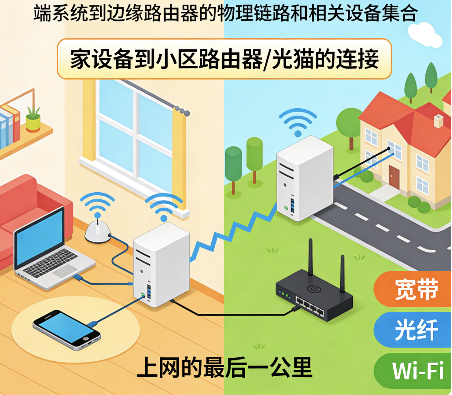 先问大家一个简单的问题:你用手机连Wi-Fi刷视频、用电脑插网线办公、用智能手表同步数据,这些设备"上网"的最后一步,是怎么连接到因特网核心的?家里的宽带、小区的光纤,又是怎么把数据传到我们设备上的?