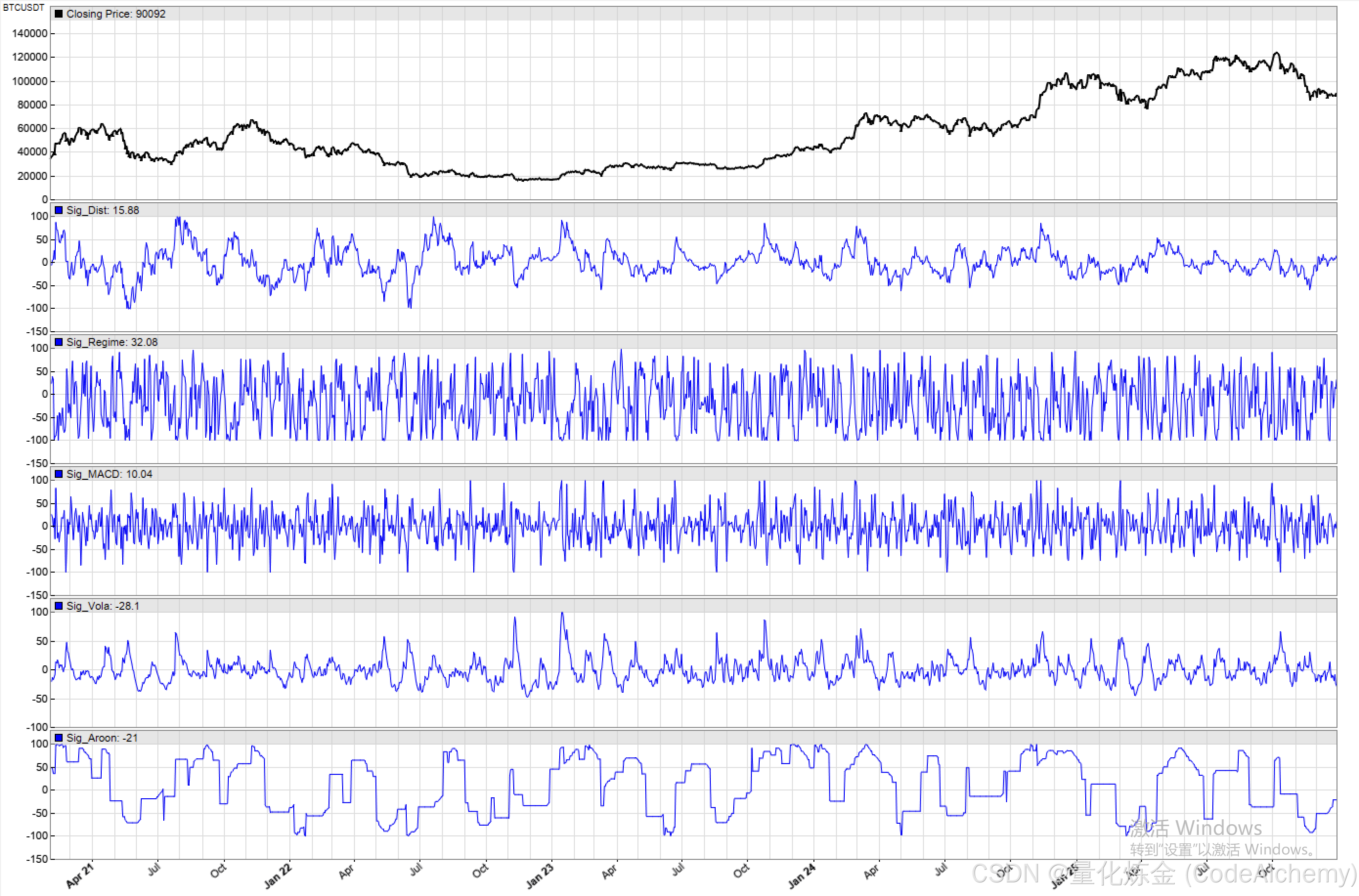 - 特性: 没有明确的物理边界,且其绝对波动率会随着行情级别动态变化,属于非平稳时间序列。静态映射会失效,因此采用计算滚动标准差的方法(Rolling Z-score)进行标准化。