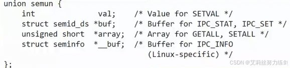 这个结构体 struct semid_ds 用于描述 System V 信号量集的关联信息。通过它,你可以获得信号量集的创建时间(sem_ctime),同时还能获取以下信息: