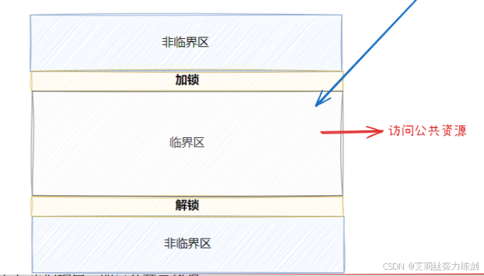 - 把访问公共资源的代码叫做【临界区】,把不访问公共资源的代码叫做【非临界区】。
