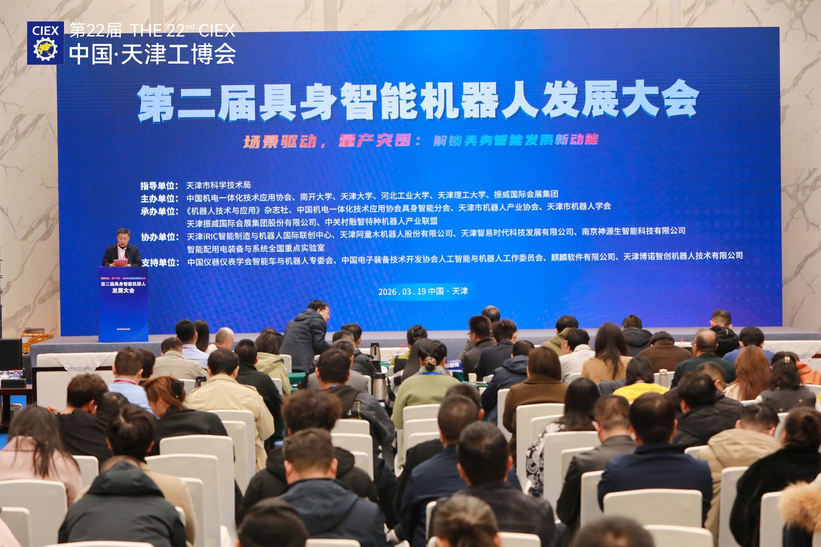 3月19日,第二届具身智能机器人发展大会于天津国家会展中心盛大举办,大会聚焦场景驱动,量产突围:解锁具身智能发展新动能主题,汇聚院士、行业专家与领军企业,共研具身智能产业化落地路径。