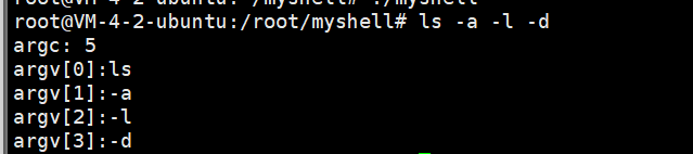 而我们定义一个变量gargc,让他来记录我们的命令被分割了多少个,char*gargv[ ]中每一个地址对应一个参数,这样我们后面实行起来执行起来命令不就简单多了,这个时候我们再想如果刚才我们没有将最后一个换行符减去,现在不久要多执行一个换行;