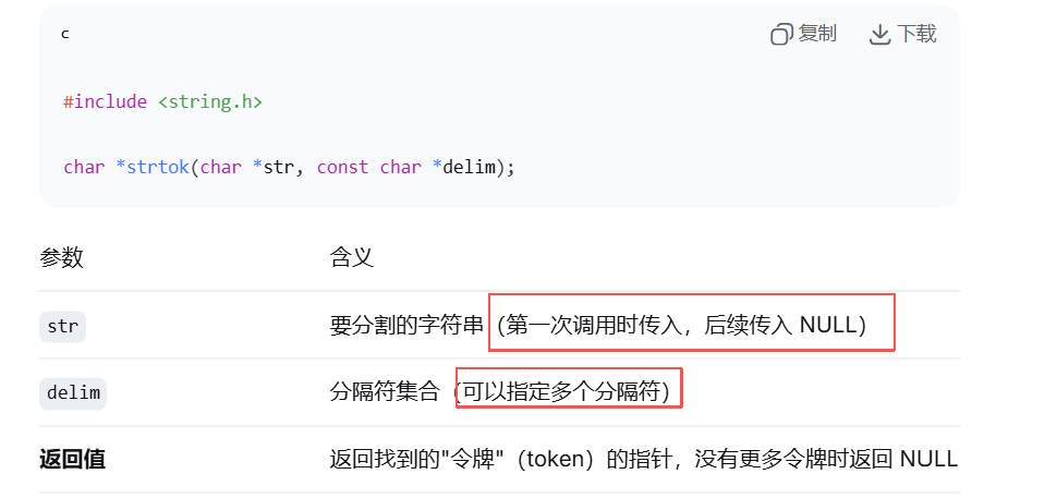 当我们在电脑屏幕上输入内容之后,我们该怎么将 ls -a -l 这样的一行字符串进行解析呢?还得让他们具体的每一个找到他们对应的操作,是的,我们需要把他们按照空格分开,而strtok( )函数的作用就是将字符串按照指定的符号进行分割;但是这个函数非常奇怪,让需要你两次调用,第一次你str传你想要分割的字符串,第二次如果还是这个字符串的话,你需要再调用他一次,但是这次的str要传NULL;该分割的都分割了之后它返回一个NULL给你;它的最后可以自动返回nullptr的特性和正好我们的命令行参数->argv的最后一个元素是nullptr一样,所以我们选用它;