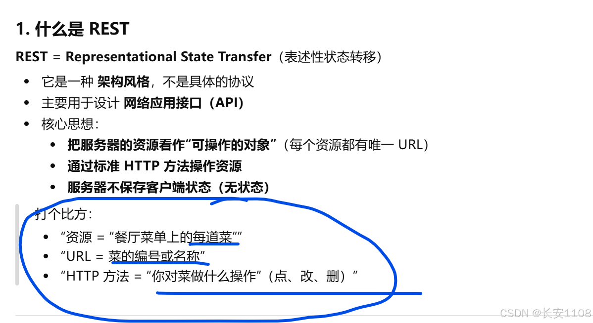 我们采用最常见的一种API风格,RESTful API,他包含两部分:资源,和,方法