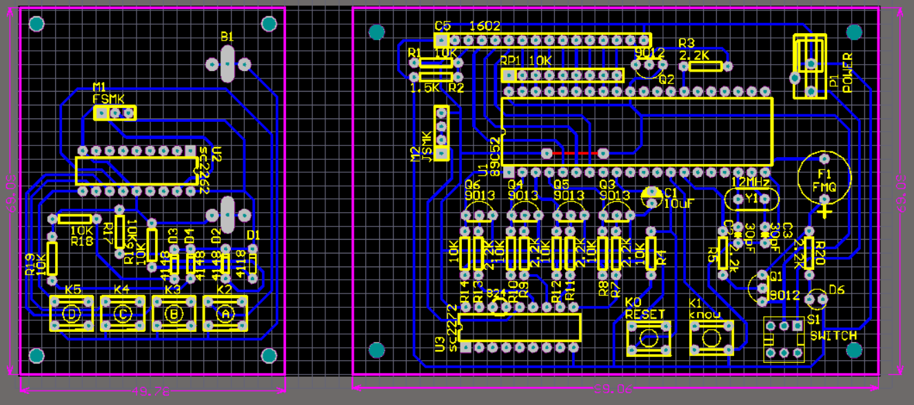 由51单片机+315M无线通信模块+SC2262/SC2272编码与解码模块+LCD1602液晶+按键+蜂鸣器+电源构成