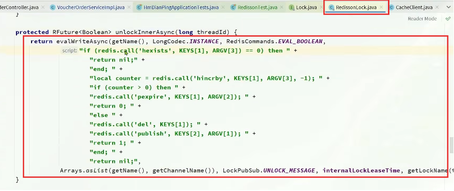 //SimpleRedisLock lock = new SimpleRedisLock("order:" + userId, stringRedisTemplate); RLock lock = redissonClient.getLock("lock:order:" + userId); //获取锁