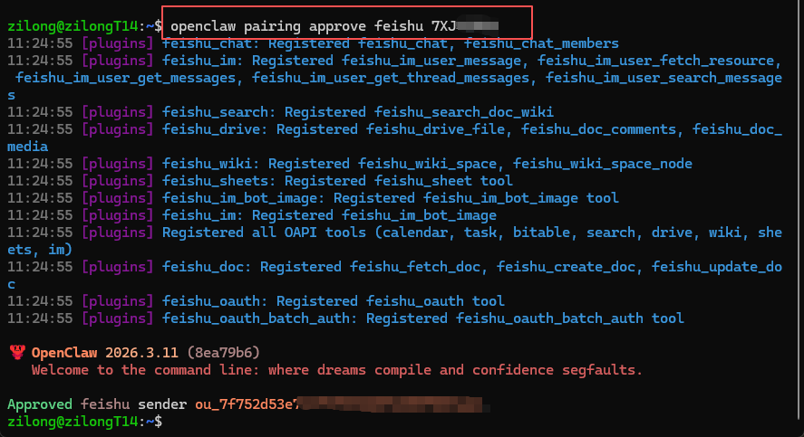 在飞书中接入OpenClaw,用手机远程控制电脑做事。