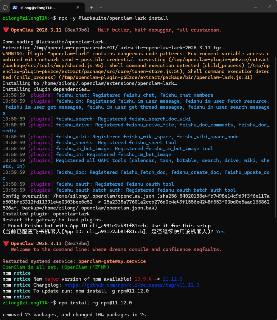 记录一下接入飞书的过程,为了以后配置的时候能直接参考。发出来,希望能帮到其他人。