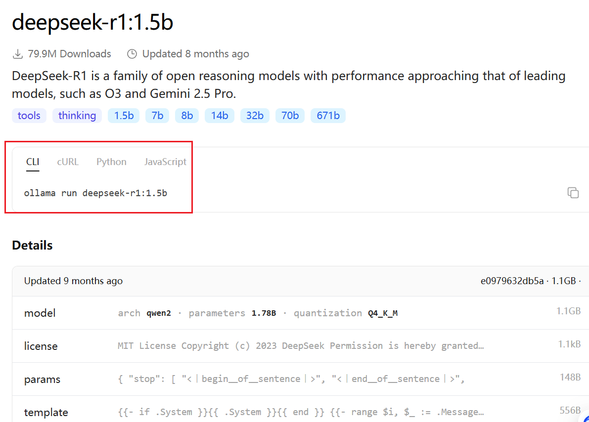 选择下载版本:B是billion的意思,代表当前模型参数的数量