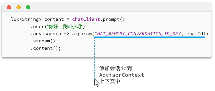3.到了这一步其实已经有了会话记忆功能,但是并不能分辨出是不同的用户,需要通过id进行分辨: