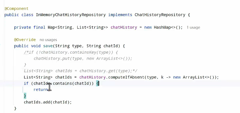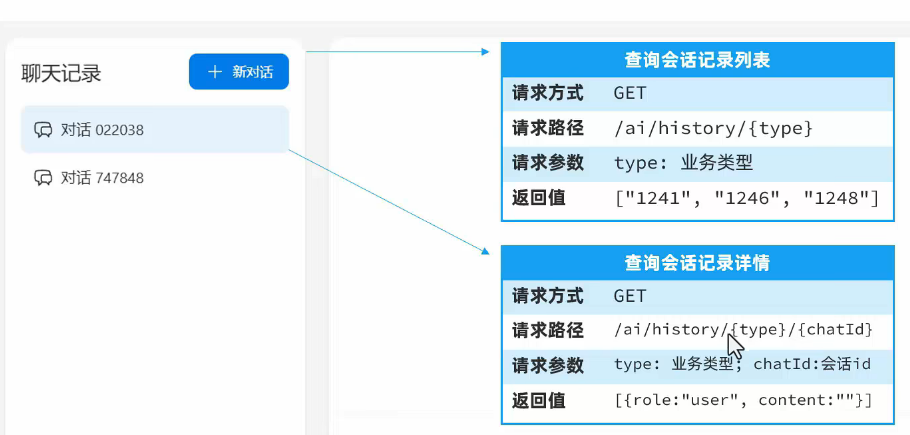 一共是两个接口,分别是会话记录列表以及记录详情,而记录详情其实就保存在chatMemory中: