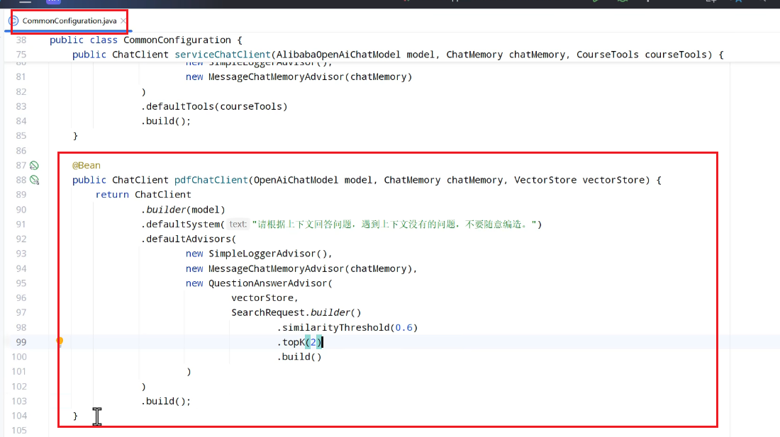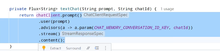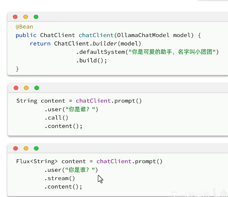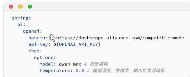 所有的chatClient都支持自定义模型配置,不一定要在yaml中进行配置,局部配置: