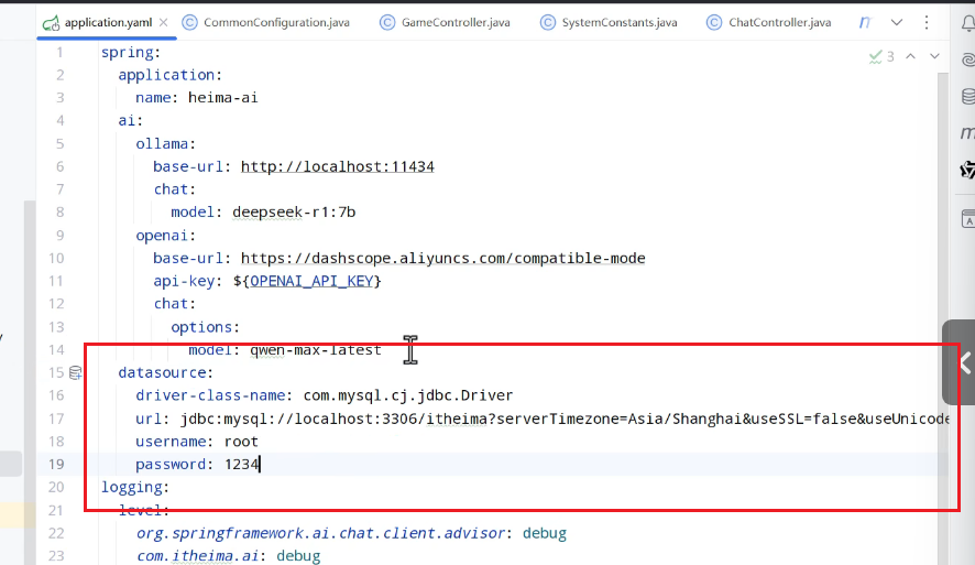 如果是openai,需要将依赖换成openai的,配置文件如图: