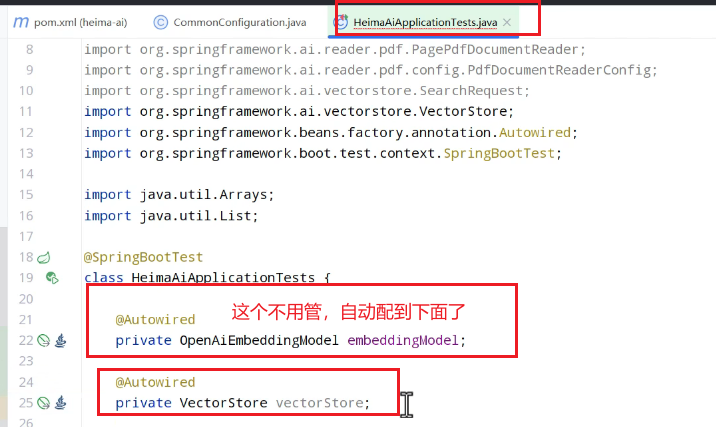 新版要引入spring-ai-starter-vector-store-redis依赖(官网复制),里面有VectorStore